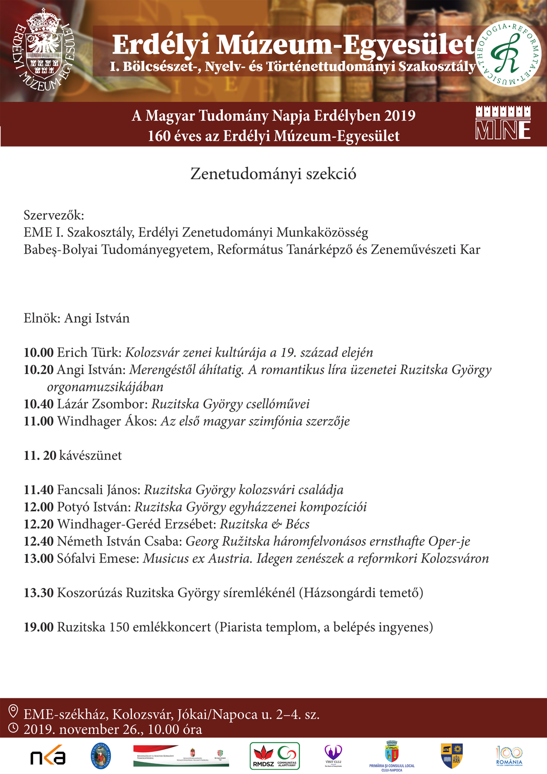 Szervezők: EME I. Szakosztály, Erdélyi Zenetudományi Munkaközösség