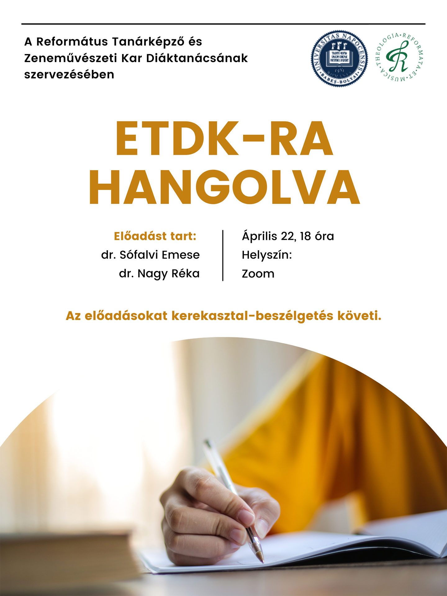 A Református Tanárképző és Zeneművészeti Kar Diáktanácsa az Erdélyi Tudományos Diákköri Konferenciára hangoló előadásokat és kerekasztal-beszélgetést szervez 2021. április 22-én, 18.00 órától.