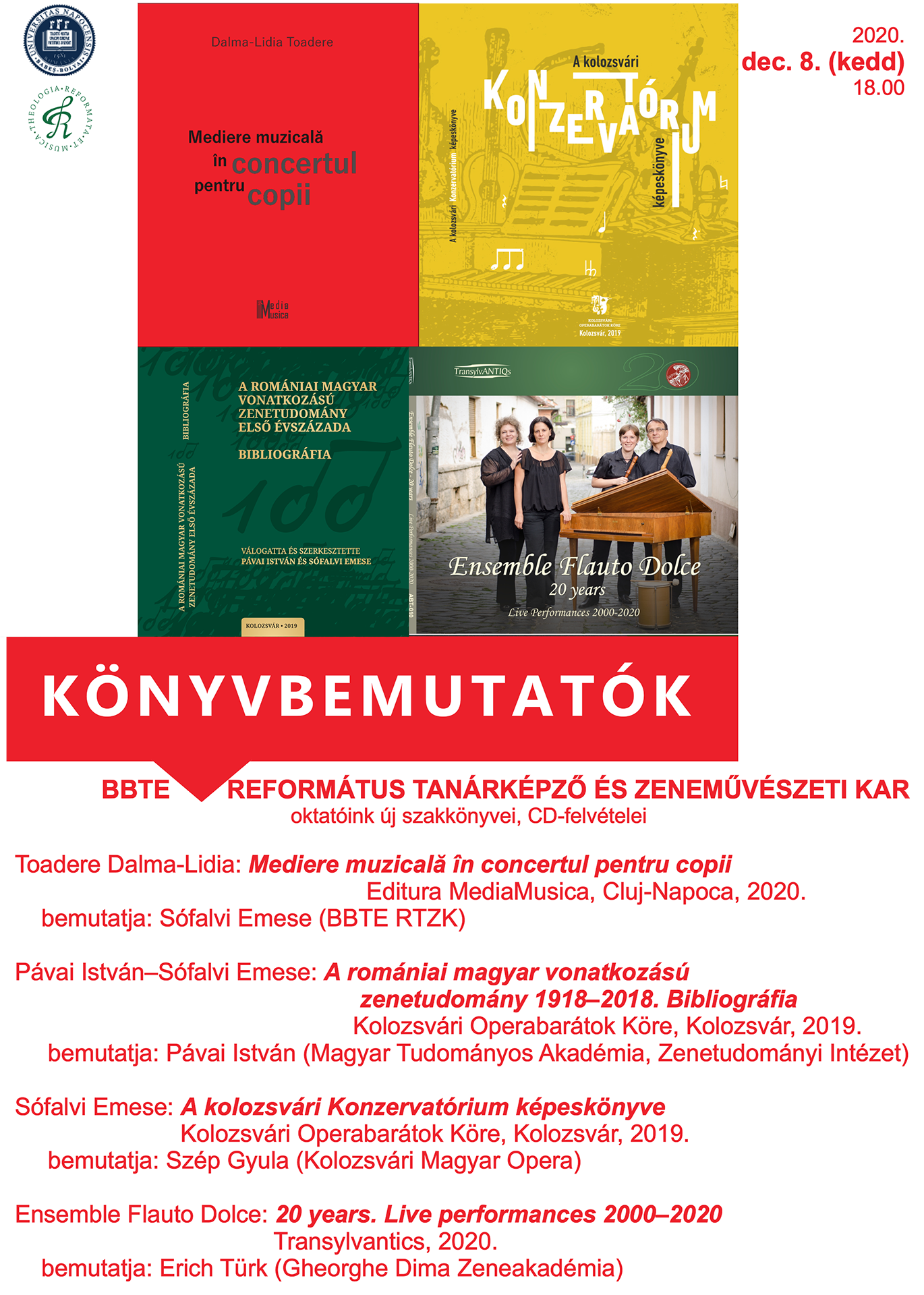 Sófavi Emese: A kolozsvári Konzervatórium képeskönyve. Kolozsvári Operabarátok Köre, Kolozsvár, 2020.
