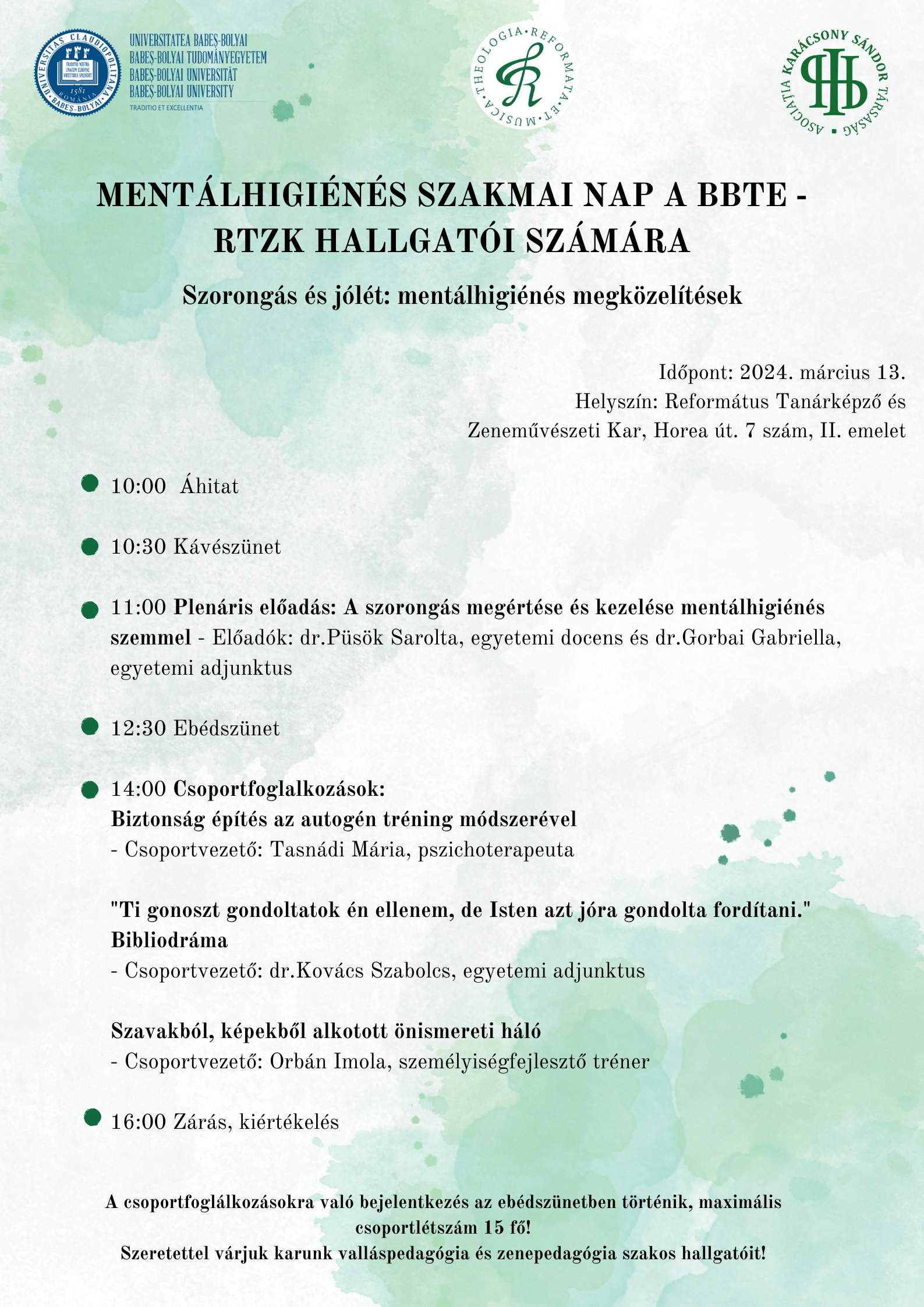 MENTÁLHIGIÉNÉS SZAKMAI NAP A BBTE – RTZK HALLGATÓI SZÁMÁRA