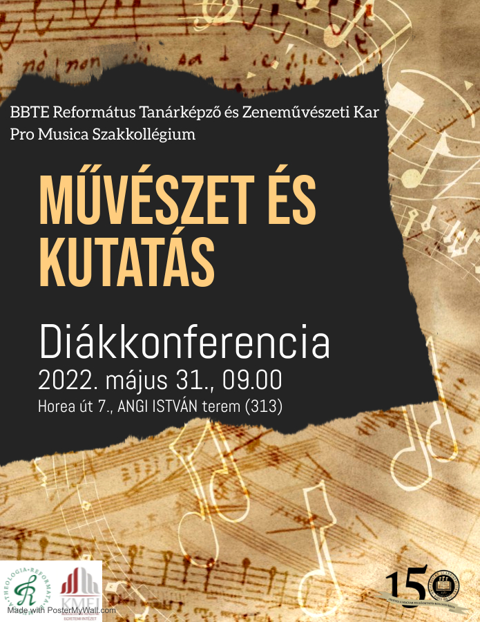 A szervező Babeș-Bolyai Tudományegyetem Református Tanárképző és Zeneművészeti Kar Pro Musica Szakkollégiuma támogatója a Kolozsvári Magyar Egyetemi Intézet.
