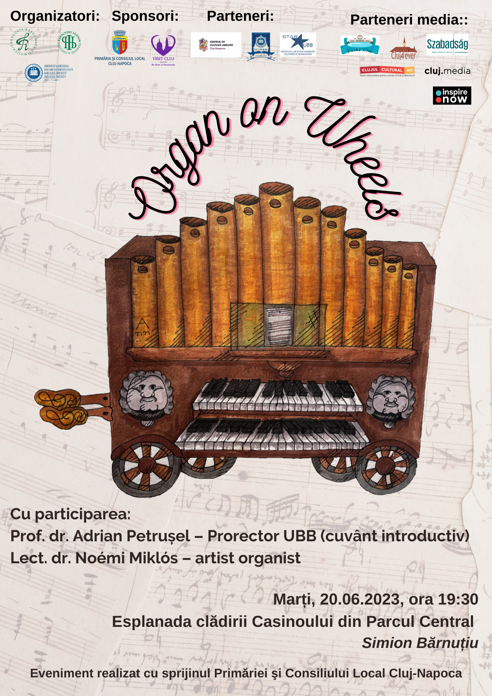 A Karácsony Sándor Társaság és a BBTE Református Tanárképző és Zeneművészeti Kara, a Kolozsvári Városi Kulturális Központ (Centrul Cultural Urban), a BBTE Kultúra és a Star UBB intézet együttműködésével szeretettel meghív minden kedves érdeklődőt az Organ on Wheels projekt első rendezvényére, melyre 2023.06.20-án, 19:30-tól kerül sor a kolozsvári Központi Sétatér Kaszinó épületének előterén.