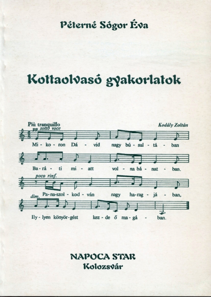 Péter, Éva. Kottaolvasó gyakorlatok (valláspedagógia szakos diákok számára), Napoca Star, Kolozsvár, 1999.
