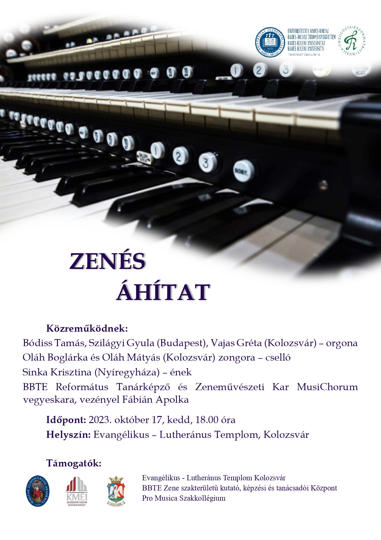 énekel a BBTE Református Tanárképző és Zeneművészeti Kar MusiChorum vegyeskara, vezényel drd. Fábián Apolka